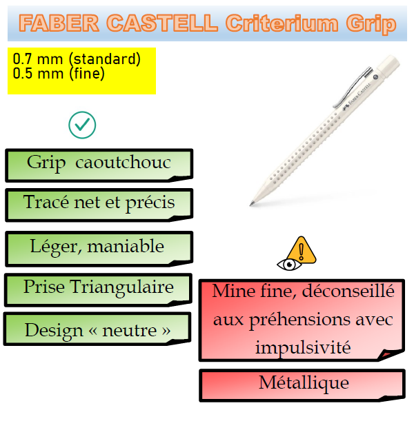 Les choix finaux d’outils doivent être adaptés à chaque élève en fonction de son profil, de ses besoins spécifiques et des préférences (esthétiques, kinesthésiques).